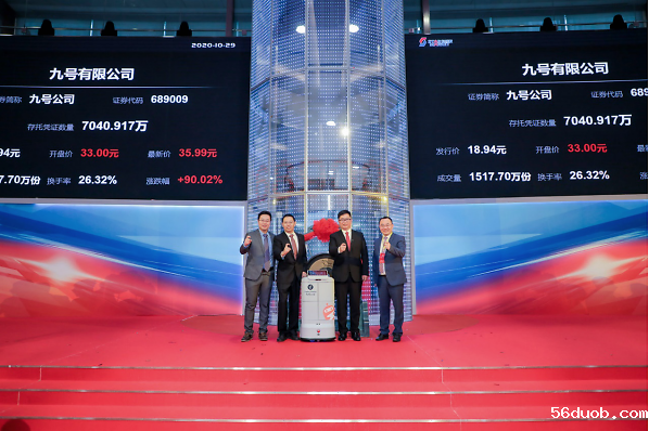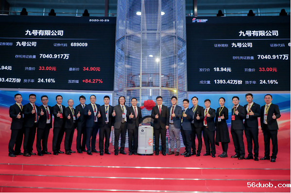 10月29日,九号有限公司(689009)首次公开发行存托凭证并在科创板正式上市,发行价格18.94元/份,开盘大涨74.23%,截至10:25,股价直达38元/股,涨幅超过100%,市值迅速冲破268亿元。值得注意的是,九号公司独出心裁地选择用自家研发的机器人上台鸣锣,开创了A股市场机器人鸣锣上市先河。